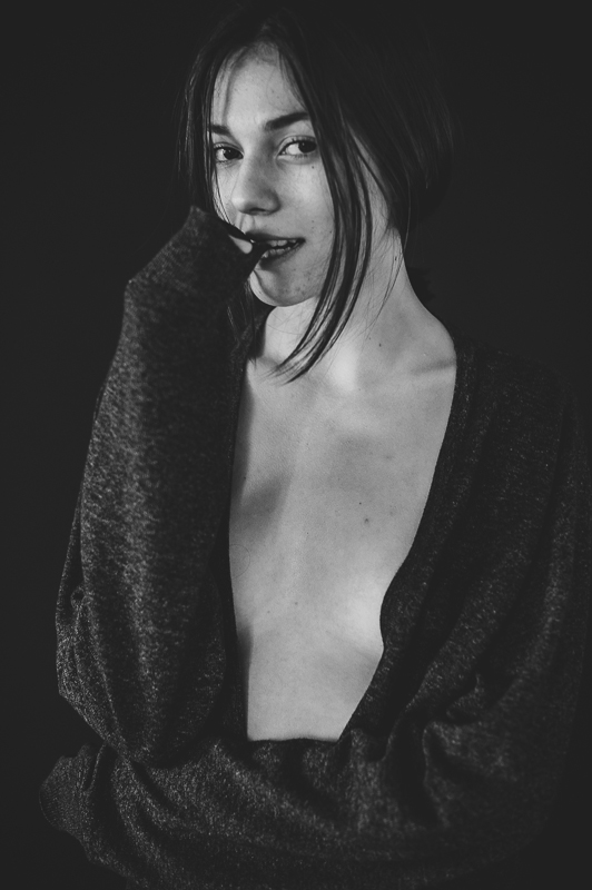 O mini-sedinta foto de 30 de minute cu Antonia (Unique Models). Fara photoshop, fara modificarea expunerii, fara retusuri de piele, fara reincadrari ulterioare, direct din camera + o conversie alb-negru cu un preset.
